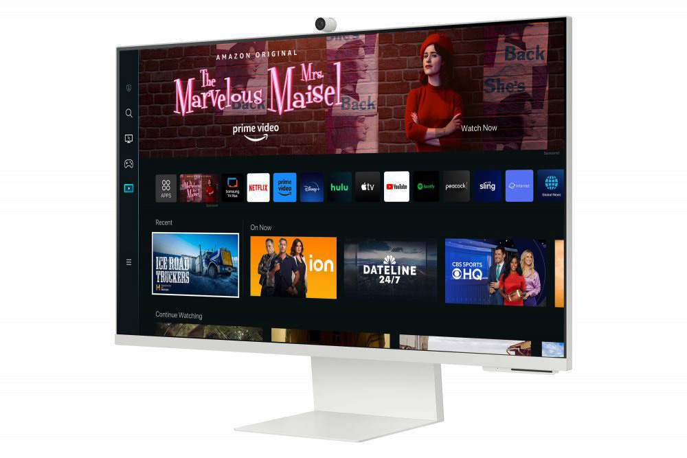 Vale ressaltar que o modelo M8 de 32” funciona como uma verdadeira estação de entretenimento, podendo exibir vídeos em HDR 4K. Além disso, este modelo conta com o diferencial da câmera SlimFit ajustável com o recurso Auto Framing para manter o objeto automaticamente no centro da imagem, mesmo quando muda de posição.