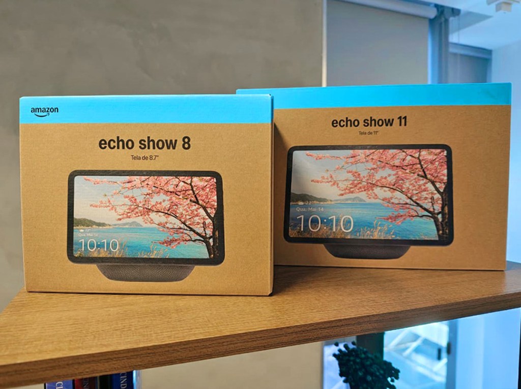 A nova linha traz os modelos Echo Show 8 (4ª geração), Echo Show 11, Echo Dot Max e Echo Studio (2ª geração), todos equipados com processadores mais potentes, design renovado e plataforma de sensores Omnisense.